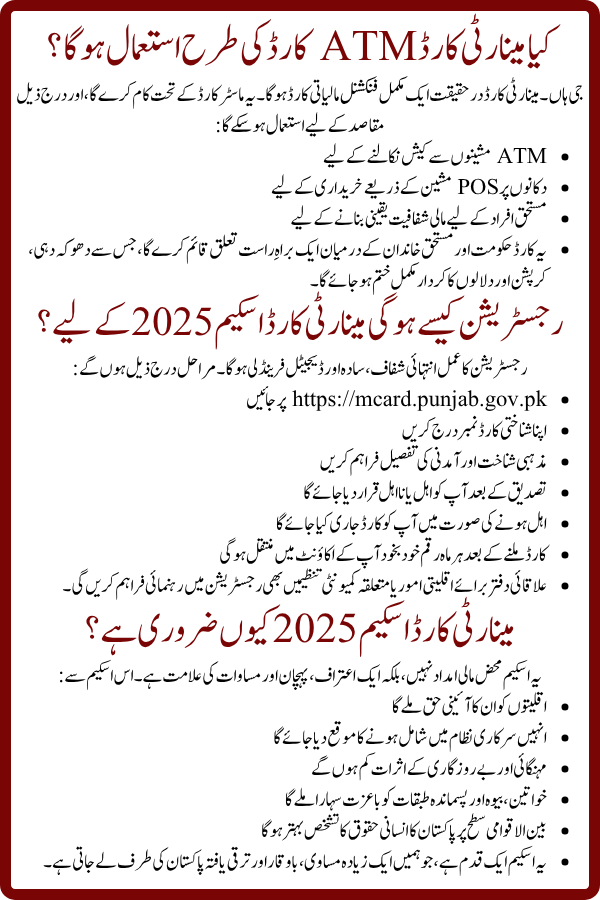 Minority Card Program 2025 Pakistan’s minorities have a historic opportunity—to live with dignity, achieve equal status, and become economically stronger. This scheme is a declaration that Pakistan belongs to every citizen, every religion, and every person has equal dignity and rights.