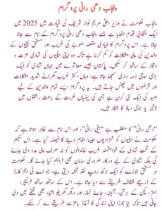 In 2025, Punjab witnessed a historic step towards social welfare under the leadership of Chief Minister Maryam Nawaz Sharif. One of her most notable announcements has been the launch of the Punjab Dhee Rani Programme. This initiative is designed to empower underprivileged families, especially those struggling with the financial and social burden of arranging marriages for their daughters. In a society where weddings often bring huge economic pressure, this program arrives as a ray of hope for the poor and marginalized.